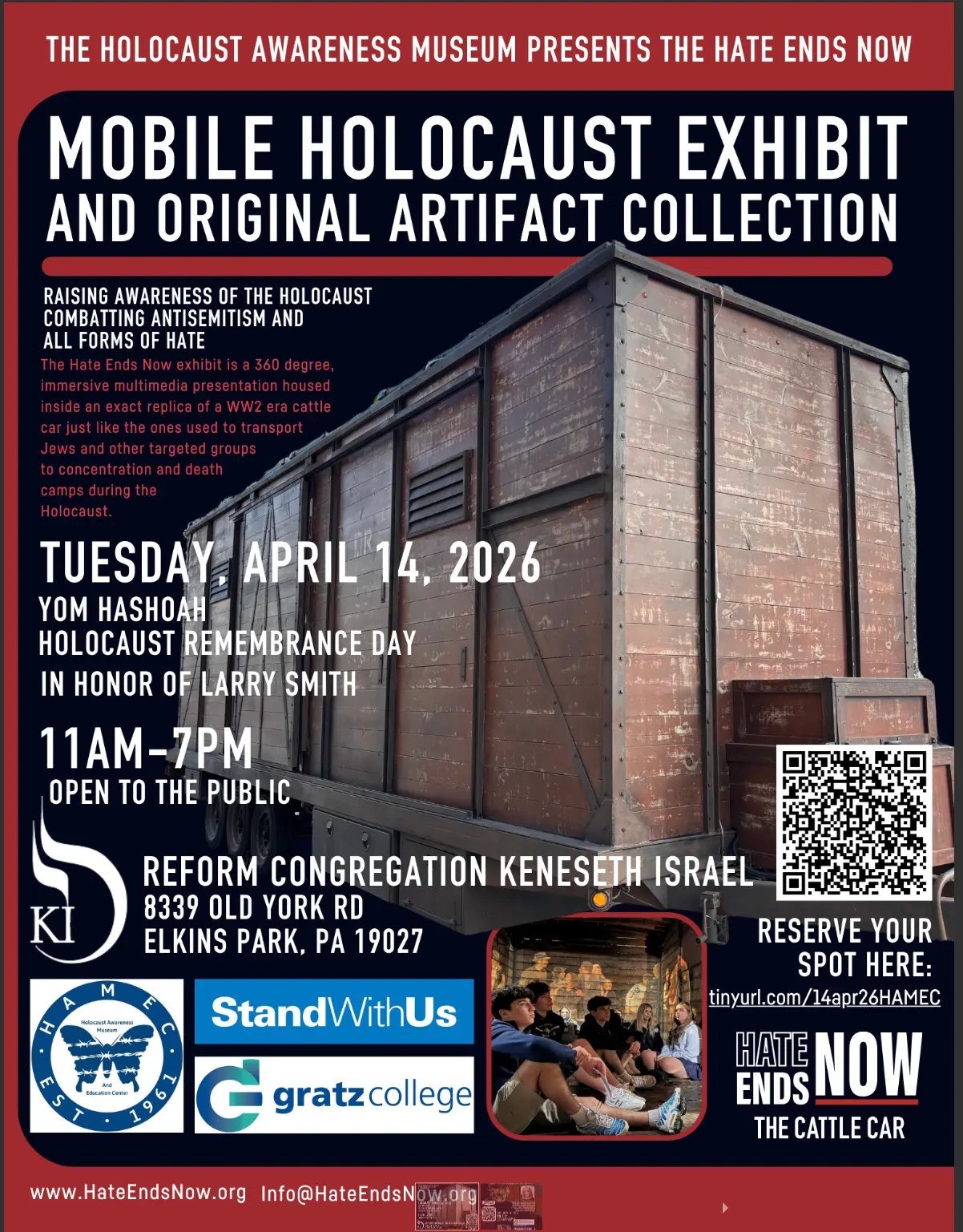 Join HAMEC as we honor Larry Smith and reflect on 65 years of HAMEC’s work to confront antisemitism and prejudice of all kind through Holocaust education. This gathering includes the powerful Cattle Car Experience, created to help visitors better grasp what survivors endured.