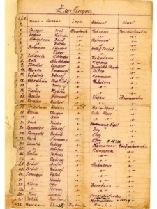 A list of male twins in the Auschwitz-Birkenau concentration camp compiled by Spiegel. (Courtesy of “The Last Twins”)